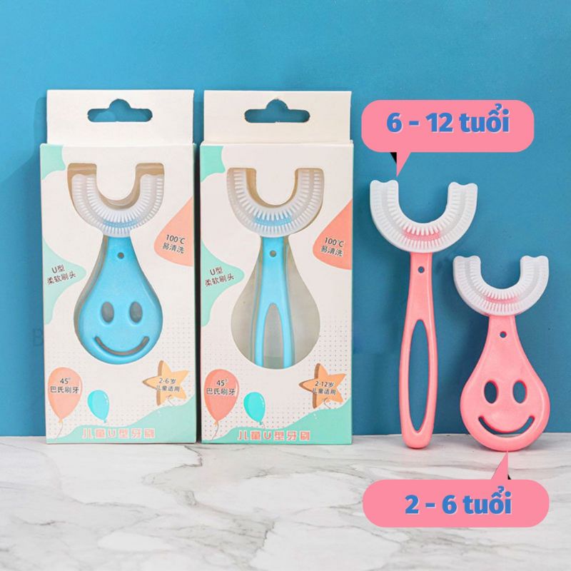 Bàn chải đánh răng chữ U cho bé 2-6 tuổi, tay dẹt