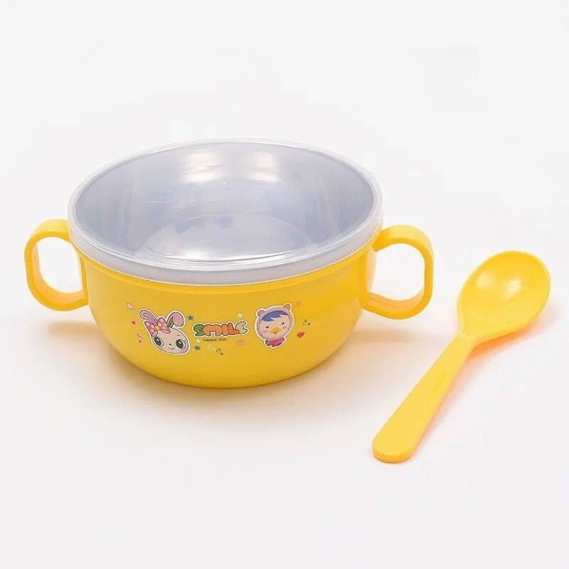 Bát inox ăn dặm 2 lớp chống nóng cho bé kèm thìa