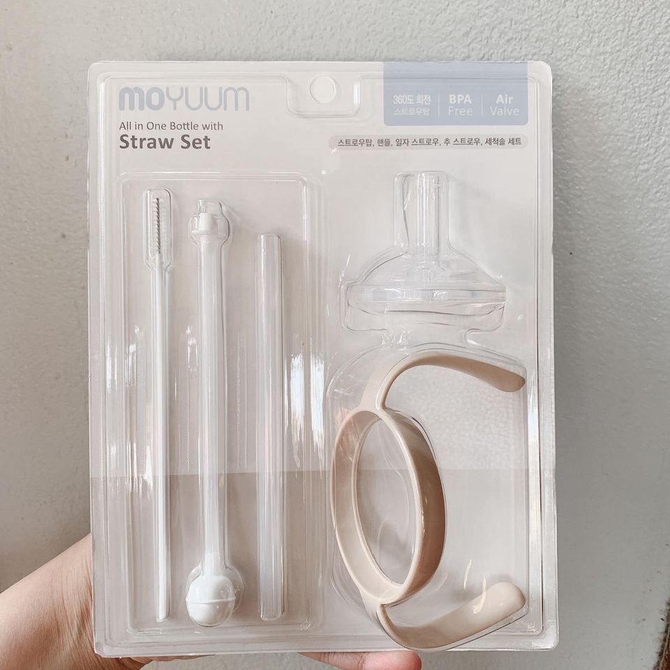 👉Bộ chuyển đổi từ bình sữa sang bình tập uống nước gồm các phụ kiện như quai cầm, ống hút, ty tập uống, và cọ vệ sinh ống để tận dụng thân bình sữa có sẵn. Hãng Moyumm thì siêu nổi tiếng tại hàn Quốc nên chắc ba mẹ không còn xa lạ hãng này nữa r...