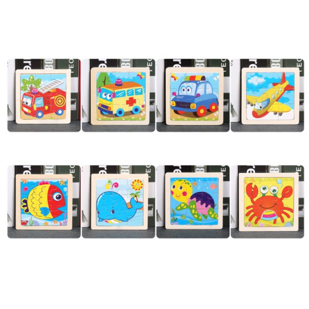 Đồ chơi bộ tranh xếp hình, ghép hình lắp ráp gỗ 9 mảnh - tranh ghép gỗ 9 miếng thông minh phát triển trí tuệ cho bé với nhiều chủ đề có hình các con vật, xe cộ ngộ nghĩnh với màu sắc sinh động thu hút sự chú ý, phát triển các giác quan và tư duy logic của bé