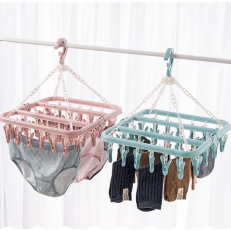 Móc chùm phơi quần áo với thiết kế hình vuông, giúp bạn phơi các quần áo trẻ sơ sinh, đồ nhỏ, khăn, tã lót, tất...một cách dễ dàng mà không sợ bị mất hay thất lạc do gió thổi bay.