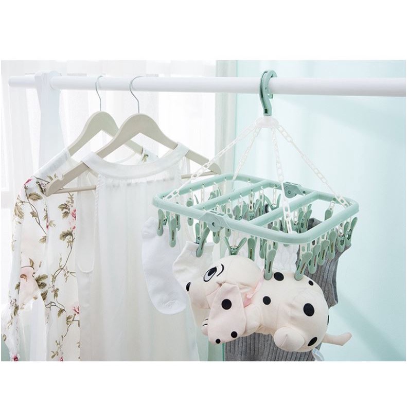 Móc treo quần áo thông minh 32 kẹp, móc chùm phơi đồ trẻ em đa năng, gấp gọn, tiện dụng