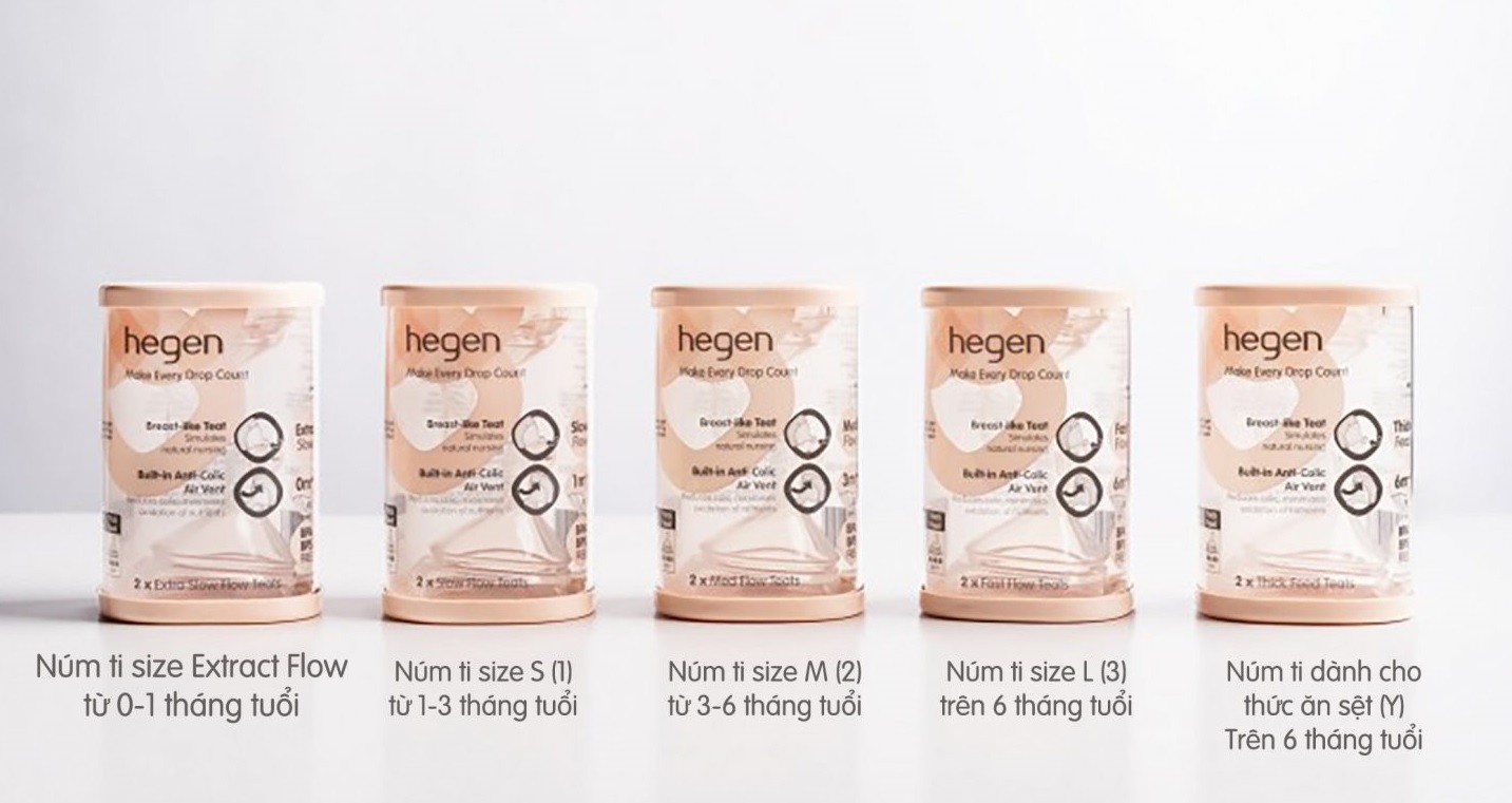 Các size núm ti Hegen phù hợp cho từng lứa tuổi của bé.