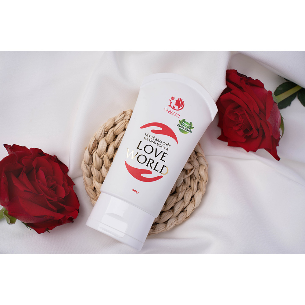 Thấu hiểu tầm quan trọng của bước làm sạch da trong chu trình skincare mỗi ngày, LOVE WORLD đem đến cho bạn sản phẩm Tẩy tế bào chết và thải độc da hoàn toàn từ thiên nhiên, giúp loại bỏ phần biểu bì già cỗi, ngăn ngừa sự hình thành của mụn, thâm nám và tàn nhang, đẩy lùi các dấu hiệu lão hóa trên da, giúp da tươi trẻ và mịn màng.