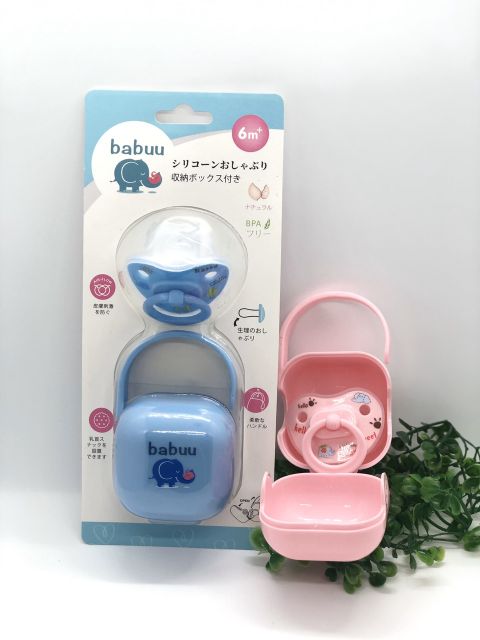 TI GIẢ/TI NGẬM CHỐNG VẨU BABUU BABY NHẬT BẢN (0 tháng +, có hộp đựng)