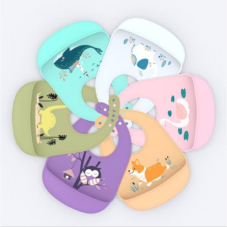 Yếm máng ăn dặm silicon cao cấp không bám bẩn, hình 3D (mẫu mới)